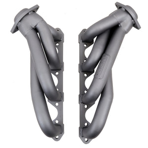 These BBK Performance shorty unequal Length exhaust Headers are designed and constructed with 1-5/8 in. CNC mandrel bent tubing that offers unrestricted exhaust flow for increased horsepower and torque over factory OEM manifolds. As with all BBK Performance exhaust headers they feature a 3/8 in. laser cut flange for additional strength and a guaranteed leak free fit. All headers are robotically and precision hand welded and then pressure tested to ensure years of reliability and performance in the real world. All BBK exhaust headers are available in a titanium ceramic or polished silver ceramic coated finish and include new exhaust header gaskets, header bolts and hardware to complete the installation.