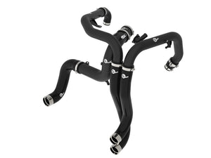 Smooth transitions in the mandrel-bent aluminum pipes decrease turbulence and minimize pressure loss, increasing horsepower and torque. This charge pipe kit provides a smooth transition between the turbo and the engine for lower operating temperatures and increased power. This kit includes high-quality, stainless-steel, smartseal clamps and heavy-duty, 5-ply, polyester reinforced silicone couplings. This charge pipe kit also features factory style quick-connect adaptors with o-ring seals to ensure a leak-free fit while maintaining superior strength and durability. Finished in wrinkle black powder coating with a unique laser-etched aFe POWER logo for a custom look.