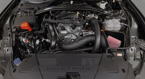 This K&N cold air intake system is engineered for your FORD MUSTANG ECOBOOST L4-2.3L F/L TURBO. A high-density polyethylene (HDPE) rotationally molded tube helps increase the volume of airflow to your engine and provides a guaranteed increase of 19.08 horsepower and 18.35 torque with no tune required. This intake system is paired with a washable, reusable High-Flow LIFETIME Air Filter featuring oiled cotton filter media. The oversized, conical design allows you to go up to 100,000 miles between filter services under normal highway driving conditions. A custom designed enclosed air box helps protect intake air from the high temperature of your engine bay, and the entire system can typically be installed in less than 60 minutes.