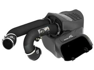 This sealed intake system utilizes pre-oiled, large 7" tall radial flow performance air filter with 5-layers of progressive finer mesh cotton media providing maximum airflow and performance. The smooth one-piece sealed housing is used to eliminate the use of multiple-piece housings and ensure the coolest air intake charge available. A large, clear sight window is used for a hassle-free filter inspection and an aggressive style. Dual 3" mandrel-bent powder-coated wrinkle-black aluminum equal length intake tubes are designed with an H-pipe to balance intake tube pressure and maximizes airflow and velocity. Also included, an exclusive black riveted aFe Power badge. This is a direct bolt-on kit that requires no cutting or drilling on factory parts.