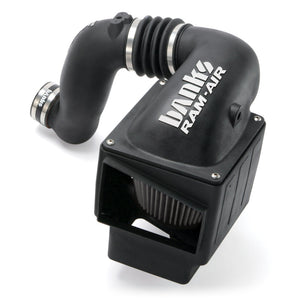 Outflows stock up to 50 Percent. Reduces exhaust gas temps (EGTs). Exclusive 4-1/2 inch bellows to accommodate engine movement. Enclosed housing keeps out hot, power-robbing engine air. Easy filter access for monitoring & cleaning. Add the optional Super-Scoop (42190) and ram cold air for more power.Testing, testing & more testing. Banks Ram-Air Intake Systems are tested and proven. They start out as CAD software prototypes and are put through flow simulations. After a hardware prototype is made, it's tested on a flowbench. Then it's tested on the vehicle. And finally, Banks' density-tests the Ram-Air against stock and many competitors.Proven design. Proven performance. Banks Ram-Air Intake maximizes the flow of cool, dense air to the engine for greater power and fuel economy. Thanks to its enclosed cold-air housing, huge inlet with giant dome-shaped filter, and streamlined internal design, it flows 50% better than stock! Infact, it performs so well that it delivers greater air density to the turbo's inlet than all competitors tested. Add on the optional Super-Scoop (42190 for standard bumper or 42191 for painted bumper), and the results are even better!Longer service life, too. An aftermarket exclusive: with 4-1/2" bellows, Banks Ram-Air accommodates engine movement, which protects the components and extends service life. What's more, Ram-Air is designed to not cause fault or error codes.It's all about density. And Banks Ram-Air Intake delivers. The harder you work your truck, the more Banks Ram-Air Intake improves power and fuel economy!