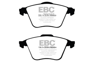 Designed for premium street driving offering better brake effect up to 600-degrees C (1100-degrees F). EBC Greenstuff has a high initial brake effect and gives drivers confidence from first application of the brake pedal. There is no such thing as a NO DUST pad. The very nature of how a brake works requires that some dust be generated to avoid rotor vibration (shimmying). The EBC pad creates less dust and dust is more easily washed off than most. All pads create more dust as they are bedding in especially if rotors are worn. Nominal friction coefficient 0.55. For heavier faster cars and vehicles above 200bhp we strongly recommend Redstuff which DOES offer much less dust.