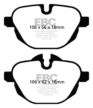There are TWO reasons our customers love Redstuff, First because they are the lowest dust pad we have encountered by reducing dust by 60-90-percent. Plus the minimal dust you see is very easily removed with a simple sponge wash as it contains no steel fibre particles as in ALL OTHER pads. Second they brake like an alligator right from cold (as good as Original pads or better) and just get better as they heat up.This material is a Synthetic Fiber based brake compound enhanced with ceramic particles. If you have previously tried EBC redstuff (pre-ceramic compound) this material is light years ahead. It lasts longer; it brakes better and is quieter. Being a hard wearing pad, bed-in times can be as long as 1000 miles and drivers must be patient until the pad takes up the shape of their disc (brake rotor). This is a truly impressive fast road pad for repeated heavy braking.It emits far less dust than semi-metallic pads and has been proven to stop a passenger car/sedan/sport compact/hot hatch 13 metres quicker than OEM pads from 100mph/160kph. Features EBC Brake-In surface coating which conditions rotor surface and accelerates pad bed-in. Nominal friction coefficient 0.5 with approx. 50-percent dust reduction.Most EBC Red Ceramic pads are approved to ECE R90 brake safety regulation.