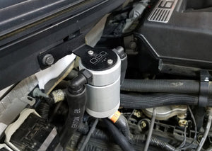 During the process of venting crankcase pressure back through your intake track, large amounts of oil, in the form of vapors can gather/accumulate in your intake tube, intake manifold runners and even dilute your gas, lowering its octane level. This happens on all engines and is even worse with forced inducted vehicles (supercharged and turbocharged) as crankcase pressures are increased. To combat this, we have developed an oil separator of our own design. Milled from solid billet aluminum this is a rock-solid piece. It has a knurled tank base for easy removal to drain the spent oil and an O-ring seal to prevent any leaks. Filtering consists of a fine mesh stainless steel screen that traps fine oil vapors and releases them once heavy enough to fall. They then pass through a 1/2" thick 1/16th" aluminum honeycomb filter where they grow every larger and then fall into the bottom. By the time the oil gets through the filter it's too heavy to be passed on into the intake. The tank holds 3 oz of fluid, while that may not sound like a lot, you shouldn’t see that much oil in your PCV system. Drain it every 2000-3000 miles and you will never come close to filling it.