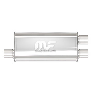 The MagnaFlow 5" X 8" Oval Straight-Through 12265 is engineered to enhance your ride with a healthy helping of our signature exhaust sound and dyno-proven performance thanks to its free-flowing straight-through perforated stainless steel core wrapped in stainless steel mesh and acoustic fiber fill. The reversible, universal 2.5/2.5in. diameter inlet/outlet Straight-Through layout allows you to install it in whatever orientation and configuration you see fit. However, professional installation is highly recommended. Muffler 12265's weight-optimized 5x8x18in. oval-shaped body features a satin finish that elevates the overall aesthetics of your current exhaust setup. 12265 is made of durable, corrosion resistant stainless steel and produced using cutting-edge CNC precision robotic manufacturing techniques, all backed by MagnaFlow’s limited lifetime construction warranty.
