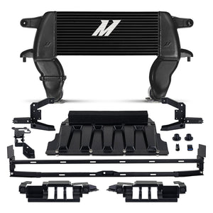 The Ford Bronco has a heritage of tough, go-anywhere capability. The 2021+ Bronco is no different and deserves a cooling system that can stand up to the task. Here at Mishimoto, we never back down from a challenge, so we developed a high-mount intercooler to let your 2.3L or 2.7L EcoBoost breathe the coolest, densest air possible to help improve performance and overall efficiency. We relocated this high-mount intercooler to the upper grille to allow greater clearance, improved entry and exit angle, and protect your intercooler from obstacles on the trail. This relocation also frees up your front bumper for winches and other essential off-road accessories. We've also included new ducting to ensure ample airflow through the intercooler in its new location. The Mishimoto High-mount Intercooler features a 3.1 inch-thick core with precision TIG-welded cast aluminum end tanks. Compared to the factory tube-and-fin intercooler, durability against heat, pressure, and debris on the road or trail is significantly improved.----More durability is always a good thing, but it’s even better when it’s backed by performance. This high-mount intercooler boasts an increase of 49-percent core volume and 93-percent external fin surface area, which results in a reduction of outlet temperatures by 21-degrees (2.3L EcoBoost) / 15.5-degrees (2.7L EcoBoost) over stock. Combined, this generates gains of 4.5 hp and 10.8 lb-ft of torque for the 2.3L EcoBoost and 8.0 hp and 10.2 lb-ft torque for the 2.7L EcoBoost. We saw exceptional improvement in our trail simulation heat-soak testing where, after 6 back-to-back dyno runs, we still saw outlet temperatures 20-degrees cooler than stock. Functionality of adaptive cruise control is retained utilizing a relocation bracket and 360-degrees cameras are unaffected. As with all our products the Mishimoto 2021+ Ford Bronco High-mount Intercooler is backed by our signature Mishimoto Lifetime Warranty.