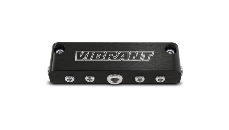 Vibrant's popular Aluminum Vacuum Manifolds allow for consistent vacuum from a single source to be distributed through up to 6 ports. Included with each Vacuum Manifold are mounting hardware and port plugs. The central port is threaded for 3/8 in. NPT fittings and all six outlet ports are tapped for 1/8 in. NPT fittings. Catalog